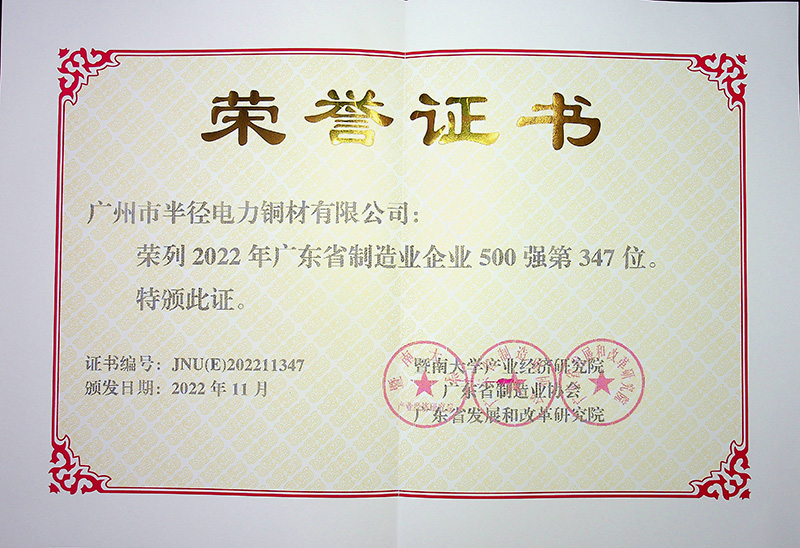 半徑連續(xù)12年榮登“廣東省制造業(yè)500強(qiáng)”榜單